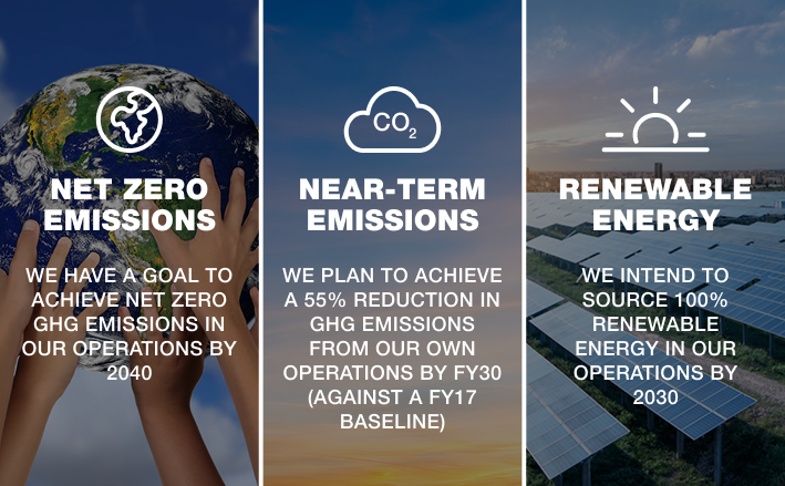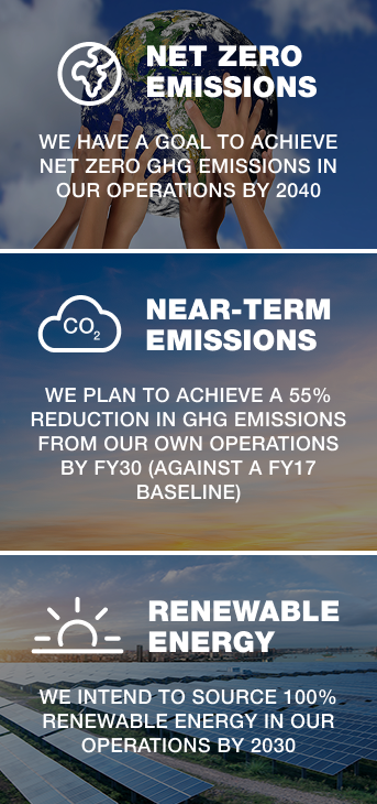 40% of energy sourced for our own operations globally came from renewable energy sources, such as solar and wind generation.